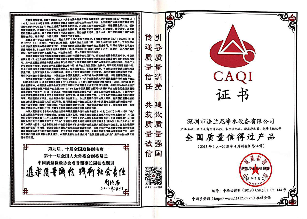 质量兴则国兴,质量强则国强。对于一个企业来说,市场是海,质量是船,品牌是帆。有了船,企业才有在大海里畅行的资本;有了船跟帆的齐力配合,才能在大海里游刃有余,勇往直前。一路走来,法兰尼始终视产品质量为生命,多年来获得殊荣不断,2018年法兰尼更是被评为《全国质量信得过产品》。