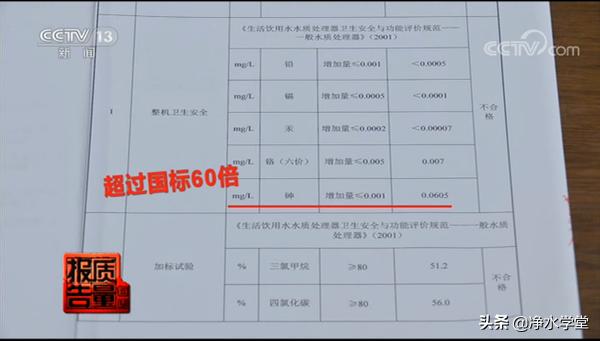 在本次检测中,不合格的三个净水器品牌分别为:TCL反渗透净水器、爱尼克斯净水器、诗朗德龙头净水器。其中爱尼克斯净水器砷含量超过国家标准的60倍以上,诗朗德净水器砷含量指标超过国家标准的4倍以上。