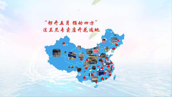 随着法兰尼品牌的不断发展壮大,法兰尼终端代理市场一片红火,多家代理商纷纷加盟,法兰尼净水器专卖店在全国遍地开花。仅5月份,就有二十余家代理商专卖店在广东、河南、河北、湖北、江西、四川、江苏、青海、山东、甘肃等地相继火爆开业。法兰尼净水器专卖店正在以燎原之势席卷全国,走进各大省市,深深根植于净水行业终端市场。
