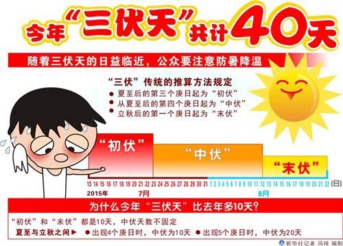 今年的初伏始于7月13日,末伏止于8月21日,整个三伏天持续40天,在这段时间内,人稍劳作或运动,就大量出汗,接着产生强烈的口渴感。因此,补水养生便成为三伏天的重中之重,而这种情况又会导致大家贪一时凉爽喝冰镇一类的水饮料和食物解暑解渴,殊不知这会使寒气入侵不能排出,潜伏在身体内遇冬则发。冬天之所以怕冷、脚凉手凉等状况都是三伏天不注意所导致。