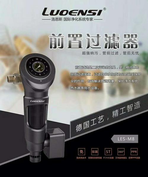 在进户水路总阀处、水表的后面,前置过滤器就安装在这个位置。洛恩斯德国精工打造的40微米前置过滤器,可有效拦截水中大多数颗粒杂质,保护家庭水路、龙头、净水器、洗衣机等涉水设备免受颗粒杂质损害。万向接头设计处理,安装方便;316L不锈钢滤网,耐冲击耐腐蚀;涡流式正反冲洗,滤网清洁更彻底,保证长期稳定截污,滤网常年免更换。