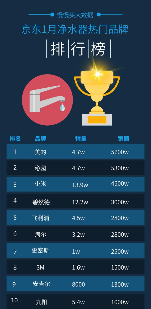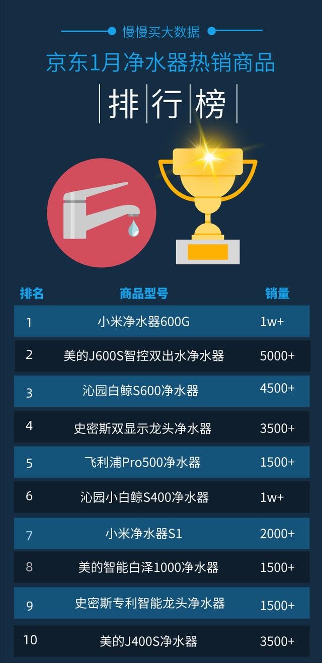 慢慢买大数据监测的2021年1月京东平台“净水器”品类销量数据出炉!