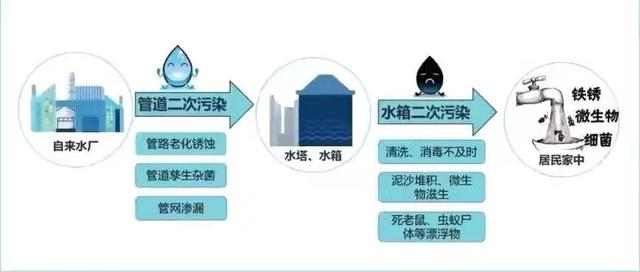 3、由于国家规定的自来水压力为28米,所以超过6层以上的高层供水,需要额外加压。现在高层楼顶上都建有蓄水池,目的就是加压给高层送水。而这个蓄水池如果清洗消毒不及时,同样会造成细菌滋生,所以二次污染就出现了。