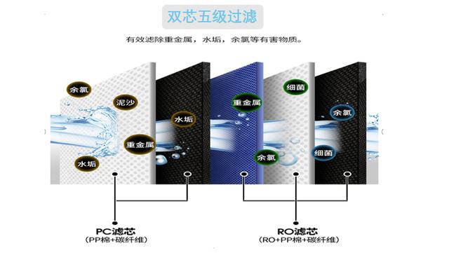逆渗透技术:逆渗透原文是REVERSE OSMOSIS,它是美国太空总署集合多国科学家, 在政府支持下,花费数十亿美元,经过多年研究而成。逆渗透的原理是在原水一方施加比自然渗透压力更大的压力,使水分子由浓度高的一方逆渗透到浓度低的一方。由于的孔径远远小于病毒和细菌的几百倍乃至上千倍以上,故各种病毒、细菌、重金属、固体可溶物、污染有机物、钙镁离子等根本无法通过逆渗透膜,从而达到水质软化净化的目的。