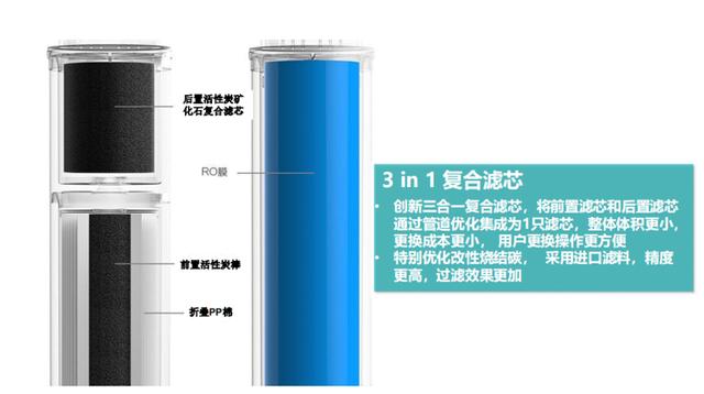 当一种工艺难以去除水中有害物质时,采用二种或两种以上的工艺即为复合型。如活性炭吸附、紫外线杀菌、活性炭吸附反渗透、活性炭吸附微过滤(超过滤)、聚丙烯超细纤维、活性炭、微过滤(超过滤)等。在复合型净水器中,膜技术复合净水器净水性能优良,特别在去除微生物(细菌、藻类等)方面有比较显著的效果,其中一些品质优良的净水器出水可以直接生饮,得到了广大消费者的欢迎,已成为净水器当前发展的热点。